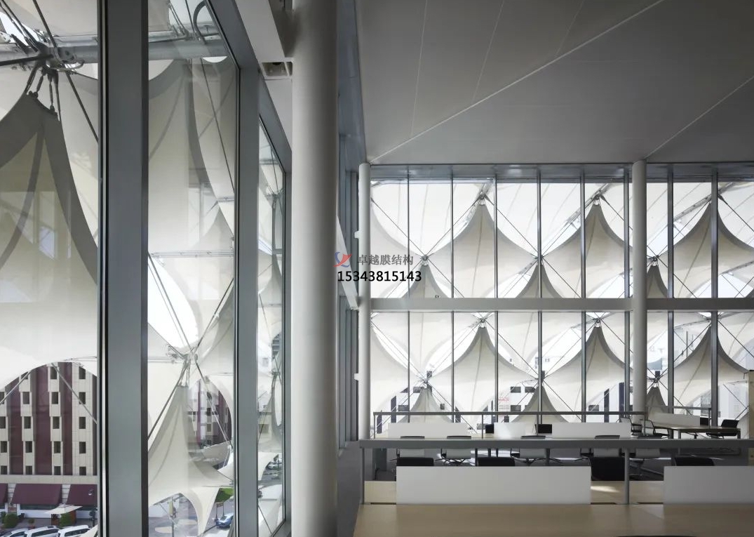 膜結(jié)構(gòu)頂棚可以有效地遮擋陽光和雨水,為圖書館內(nèi)部提供一個舒適的環(huán)境。同時,膜材料的透光性也可以保證室內(nèi)有足夠的自然光線。