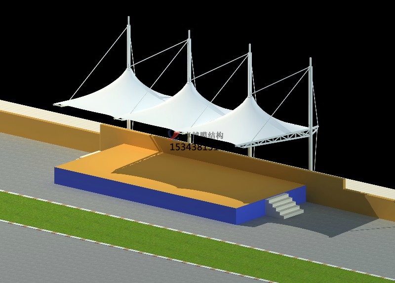 膜結(jié)構(gòu)遮陽(yáng)棚由立柱和頂棚構(gòu)成。立柱多由金屬合金制作,如鋼,鋁等,質(zhì)量輕且質(zhì)地硬,頂棚則是由膜結(jié)構(gòu)材料制成。