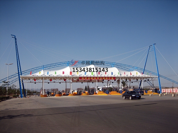 一、造型獨(dú)特,辨識(shí)度高,由于膜材重量輕,適合收費(fèi)站這種大跨度的建筑,而且是采用張力結(jié)構(gòu)所以在造型設(shè)計(jì)上具有很大的優(yōu)勢(shì),可以實(shí)現(xiàn)非常具有藝術(shù)氣息的造型。