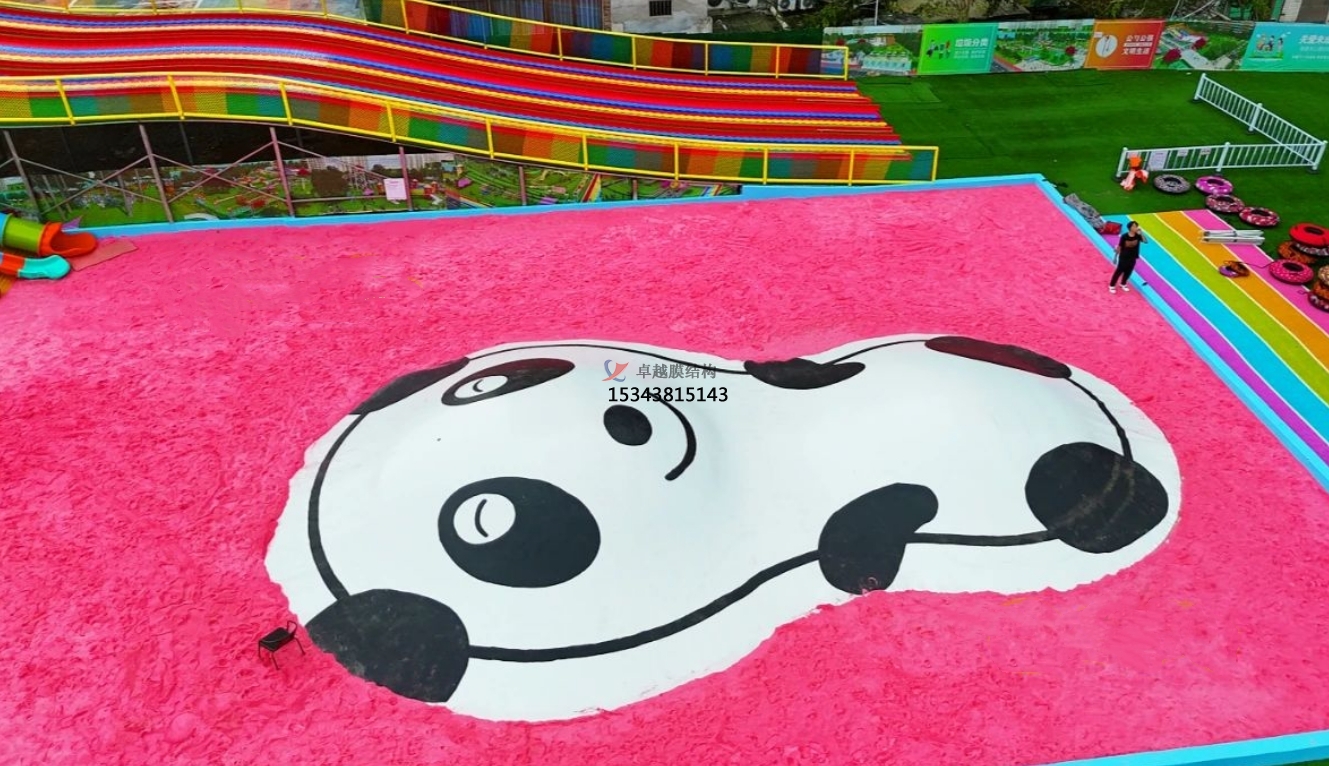 安全性高:蹦蹦云采用柔軟且具有彈性的膜結(jié)構(gòu),良好的彈性可以減少孩子們在玩耍過程中受傷的風(fēng)險。同時,其結(jié)構(gòu)設(shè)計可抵御 4 級以上的大風(fēng),且能永久性地固定在地面之上,不用經(jīng)常拆裝,為游客提供了可靠的安全保障。