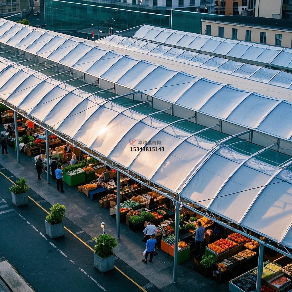 在城市的煙火氣中,農(nóng)貿(mào)市場(chǎng)占據(jù)著獨(dú)特而重要的位置。隨著時(shí)代的發(fā)展與進(jìn)步,傳統(tǒng)農(nóng)貿(mào)市場(chǎng)的面貌也在不斷革新,膜結(jié)構(gòu)在其中的應(yīng)用,為其帶來(lái)了全新的生機(jī)與活力。這種創(chuàng)新的建筑形式正以獨(dú)特的優(yōu)勢(shì),重塑著農(nóng)貿(mào)市場(chǎng)的空間布局與氛圍,為市民的日常購(gòu)物體驗(yàn)增添了別樣的魅力。?