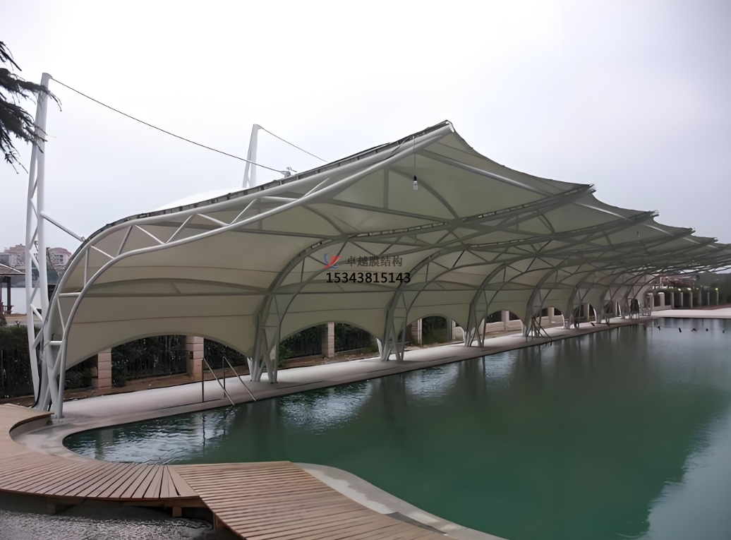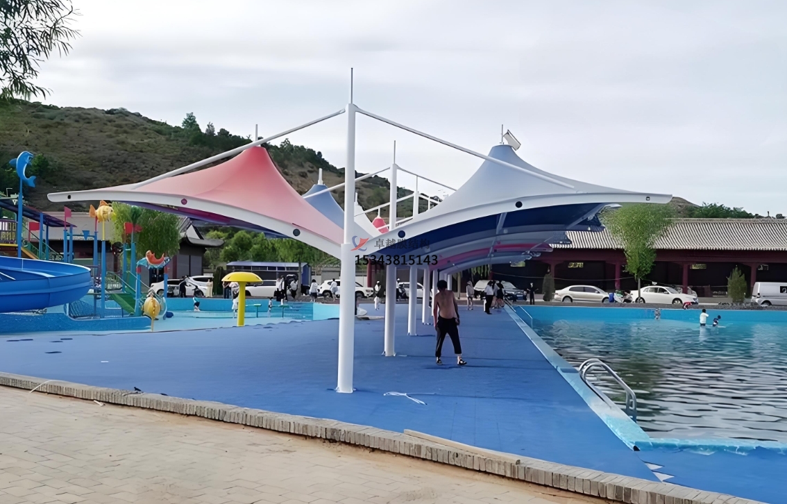 膜結(jié)構(gòu)遮陽(yáng)棚是水上樂(lè)園中不可或缺的設(shè)計(jì)元素。它不僅能為游客提供遮陽(yáng)、防雨的功能,還能與樂(lè)園的整體景觀(guān)融為一體,增添一道獨(dú)特的風(fēng)景線(xiàn)。
