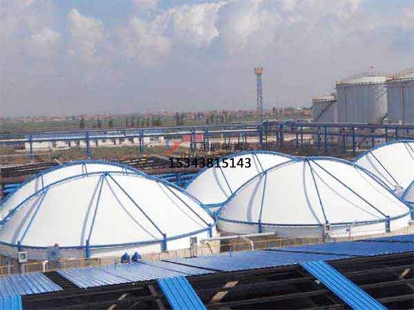 反吊膜結(jié)構(gòu)是指加蓋在污水池上的膜結(jié)構(gòu),用來(lái)密封池體,收集廢臭氣體,也常被人稱作:集氣罩。用高強(qiáng)度柔性薄膜材料與支撐體系相結(jié)合形成具有一定剛度的穩(wěn)定曲面,能承受一定外荷載的空間結(jié)構(gòu)形式。