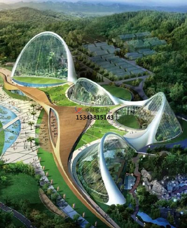 目前世界上有能力生產(chǎn)與加工ETFE膜材的廠家較少,僅德國、美國、日本等國少數(shù)幾個(gè)公司可生產(chǎn)ETFE膜材,而具有ETFE膜材加工制作、安裝能力的公司更少。ETFE膜材在國外已有20多年的應(yīng)用歷史。由于其極好的透光性能,特別適合建造需人工模擬自然環(huán)境的建筑如植物園以及運(yùn)動(dòng)場館等。如荷蘭Arnhiem動(dòng)物園、英國的Hampshire網(wǎng)球與健身俱樂部、英國的伊甸園、德國的“Moby Dick”游泳池、瑞士蘇黎世的Masoala雨林等建筑均采用ETFE膜。