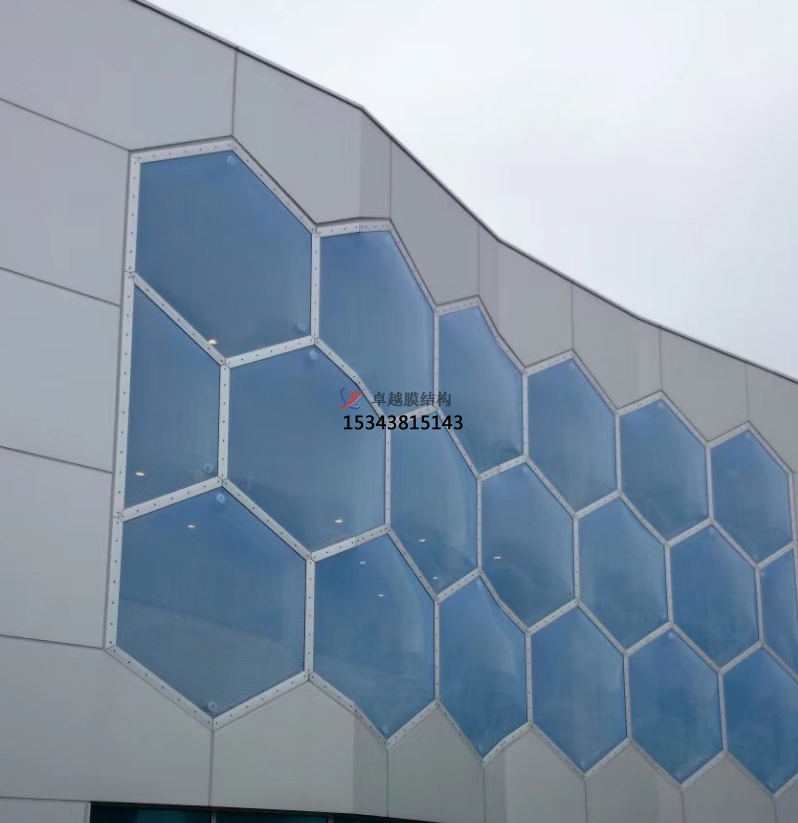 3、輕質:相比于傳統(tǒng)的玻璃材料,ETFE膜更加輕盈,能夠減少建筑的自重,降低對建筑結構的要求,從而減少建筑材料的使用量和成本。同時,它的輕質特性使得它可以更加靈活地呈現(xiàn)各種形狀和曲面設計,為建筑帶來豐富的創(chuàng)意和個性。