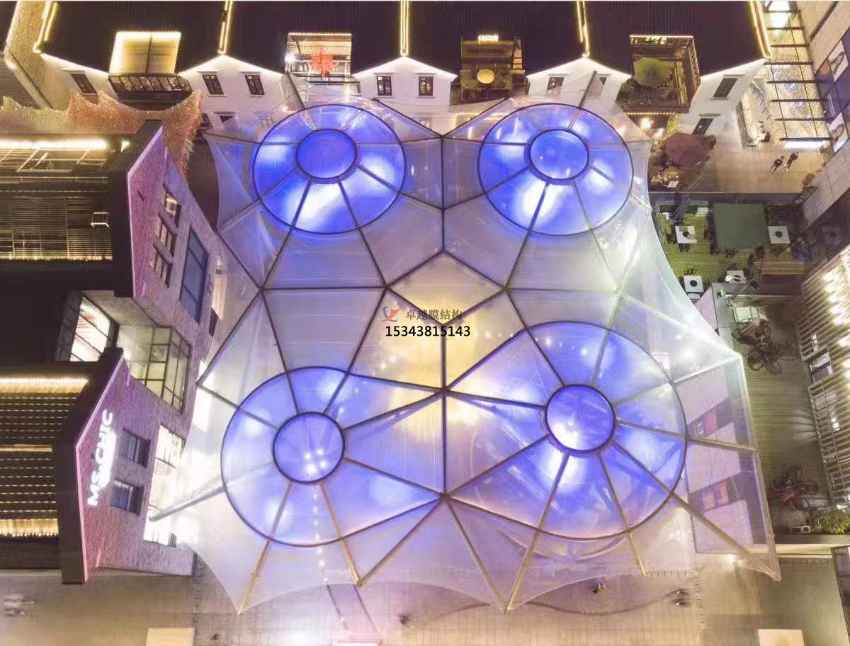 3、PVC、PVDF膜材料特點說明:PVC膜材料的織物基材應為聚酯類、聚酰胺類的纖維織物。涂層主要為聚氯乙烯類(PVC)樹脂,依據(jù)功能要求不同涂層的重量應在400~1500g/m2之間,面層宜選用聚偏氟乙烯樹脂(PVF)、聚二氟乙烯樹脂(PVDF)、聚丙烯樹脂(ACRYLIC)、硅樹脂等,且應具有改進PVC膜材料的自潔性及抗老化性能的功能。PVC膜材料的厚度應大于0.5mm。面層在保質(zhì)期內(nèi)應具有穩(wěn)定的抗腐蝕、抗紫外線的侵蝕能力,具有自潔性能。