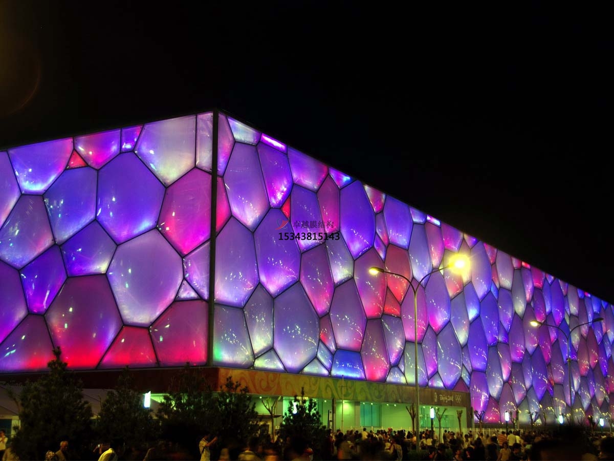 ETFE膜材的應(yīng)用在很多方面可以取代其他產(chǎn)品而表現(xiàn)出強(qiáng)大的優(yōu)勢(shì)和市場(chǎng)前景。近年來(lái)具有代表性的建筑物就是2006年世界杯主賽場(chǎng)德國(guó)慕尼黑安聯(lián)體育場(chǎng),以及2008北京奧運(yùn)會(huì)的“水立方”國(guó)家游泳中心。隨著2006德國(guó)世界杯和2008北京奧運(yùn)會(huì)兩大體育盛事的召開(kāi),越來(lái)越多的國(guó)人開(kāi)始接觸到這種新型的建筑形式,國(guó)內(nèi)相繼落成南通植物園、蘇州工業(yè)園等多個(gè)氣枕式結(jié)構(gòu)工程。