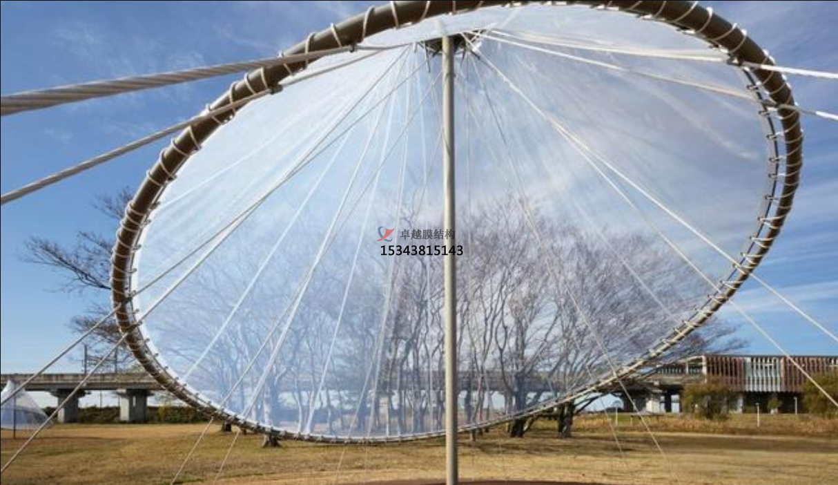 STFE不是化學(xué)成分的英文縮寫,而是膜材商品名的英文縮寫(Structural、Transparent、Fluorinated、Envelope),其本質(zhì)是網(wǎng)格覆膜。區(qū)別在于其織物基材,不同于PVC膜材的聚酯纖維紗線,也不同于PTFE膜材的玻璃纖維紗線,而是擠壓特殊涂層的聚芳酯紗線;覆膜為特種含氟聚合物(涉及商業(yè)秘密未公開),單面覆膜。覆膜的清晰度較好,可實(shí)現(xiàn)一定程度的透景。同時,由于有織物基材提高了膜材強(qiáng)度,抗拉強(qiáng)度可達(dá)4000N/5cm。即使不加拉索,膜單元跨度一般在3m以上。