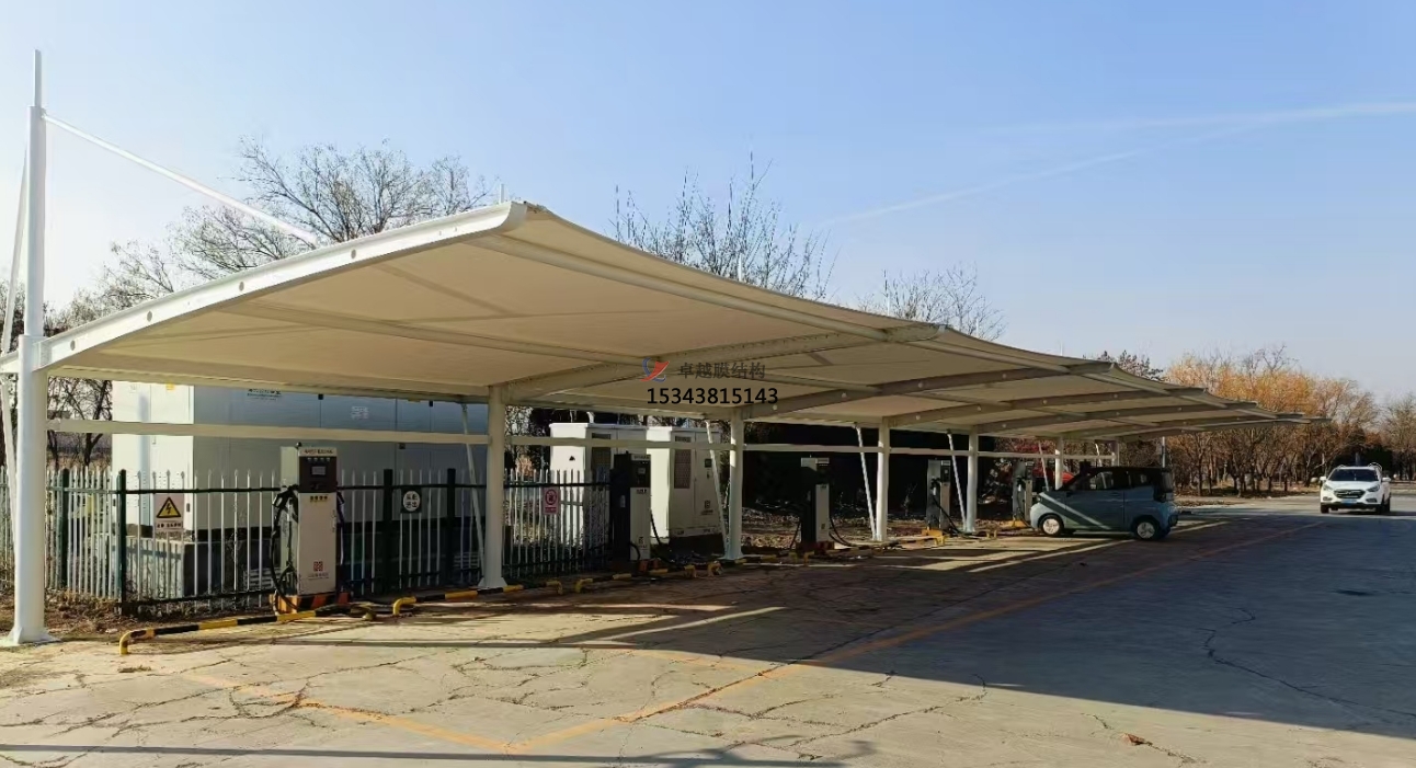 美觀大方:膜材料具有良好的透光性和折射性,使得車棚在外觀上更加美觀大方,能夠與周圍環(huán)境協(xié)調融合。