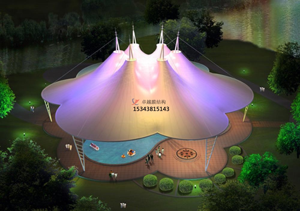 膜結(jié)構(gòu)景觀建筑添加膜的層數(shù)、操控夾層厚度以及必要時在膜層上附重都是進步降噪效果的可用方法。需要仔細考慮膜結(jié)構(gòu)景觀建筑的銜接技術(shù),保證其密閉性,下降通過空氣傳播的噪聲從縫隙中滲人的可能性。要同時保證在果取這些措施時不應(yīng)使建筑物的熱工性能受到影響。