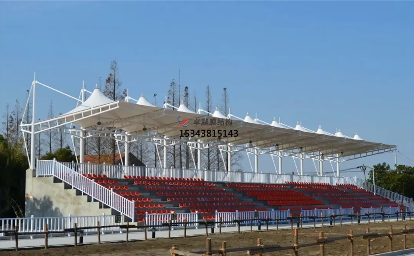 • 遮陽擋雨:膜結(jié)構(gòu)罩棚能夠有效地遮擋陽光和雨水,為觀眾提供一個(gè)干燥、舒適的觀賽環(huán)境。特別是在夏季高溫或雨季時(shí),罩棚的作用更加顯著。