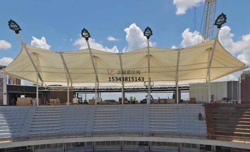 體育看臺(tái)膜結(jié)構(gòu)罩棚是一種為體育場(chǎng)館看臺(tái)提供遮陽、擋雨及美觀效果的建筑設(shè)施。它采用膜結(jié)構(gòu)材料,通過專業(yè)的設(shè)計(jì)和施工,形成覆蓋在看臺(tái)上方的罩棚,為觀眾提供一個(gè)更加舒適的觀賽環(huán)境。