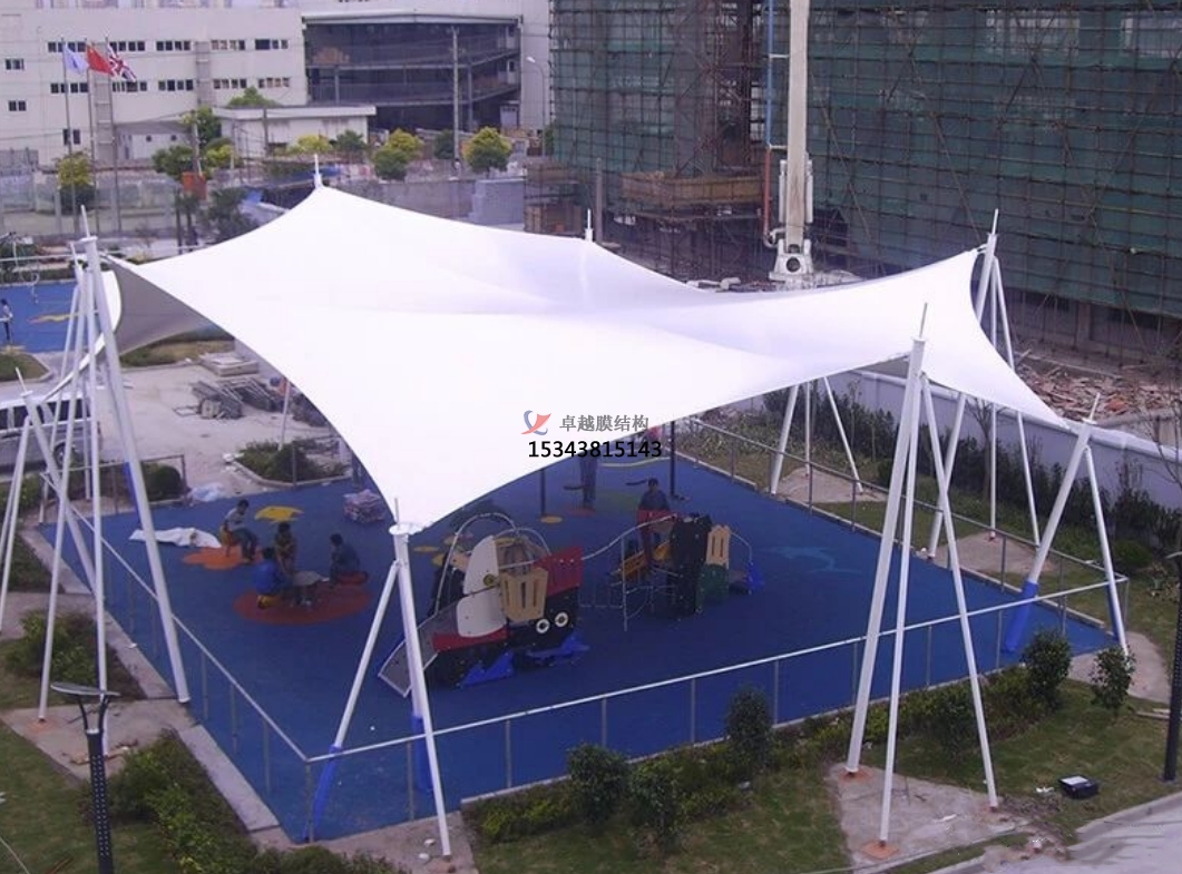 設計規(guī)劃:首先,進行詳細的設計規(guī)劃。確定頂棚的形狀、大小、高度以及所需的張拉膜材料類型等??紤]到游樂場的使用需求和環(huán)境條件,確保頂棚的穩(wěn)定性和安全性。