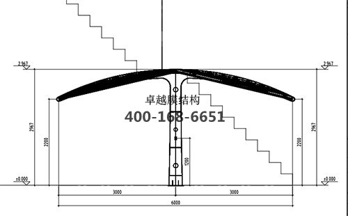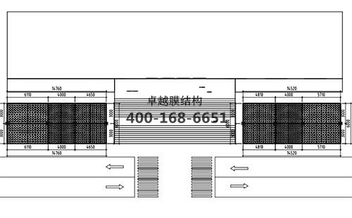 本工程膜材采用白色高端國(guó)產(chǎn)膜材PTFE高自潔環(huán)保建筑膜材A級(jí)防火,鋼結(jié)構(gòu)采用更好的標(biāo)準(zhǔn)Q235B鋼材,表面采用酚醛底漆處理,面漆采用白色鋼結(jié)構(gòu)專用快干磁漆。