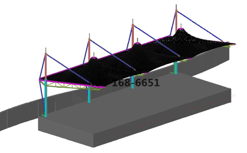 本工程膜材采用白色高端國產(chǎn)星益達PVDF高自潔環(huán)保建筑膜材,鋼結(jié)構采用更好的標準Q235B鋼材,表面采用酚醛底漆處理,面漆采用白色鋼結(jié)構專用快干磁漆。