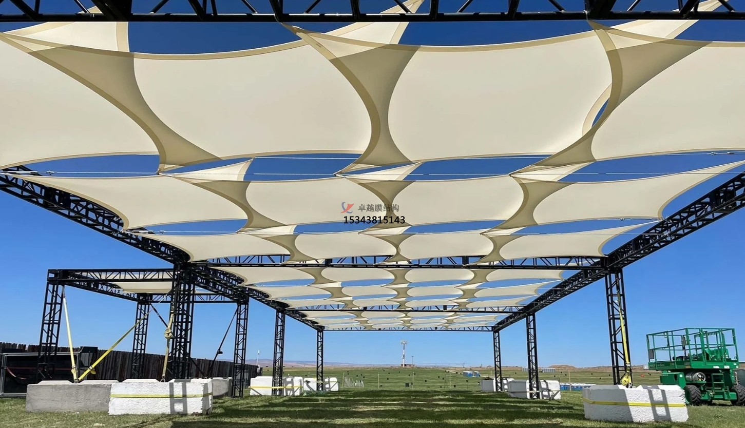 膜結(jié)構(gòu)突破了傳統(tǒng)建筑的刻板印象,擁有豐富多樣的造型。在廣場(chǎng)上,它可以是巨大的傘狀結(jié)構(gòu),為人們提供廣闊的遮陽(yáng)空間,那流暢的曲線(xiàn),仿佛是被風(fēng)吹拂的裙擺,輕盈而優(yōu)雅;在公園中,膜結(jié)構(gòu)又能設(shè)計(jì)成靈動(dòng)的波浪形,與周?chē)木G樹(shù)、草坪相呼應(yīng),如同起伏的綠色海洋中涌起的白色浪花,成為視覺(jué)焦點(diǎn)。其造型既可以簡(jiǎn)潔大氣,展現(xiàn)現(xiàn)代都市的簡(jiǎn)約風(fēng)格,又能通過(guò)復(fù)雜的曲面組合,呈現(xiàn)出獨(dú)特的藝術(shù)韻味,滿(mǎn)足不同場(chǎng)所的設(shè)計(jì)需求。