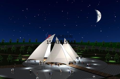 2.膜結構建筑的整體藝術性強的特點:膜結構建筑突破了傳統(tǒng)的建筑結構類型,以造型學、色彩學為依托,可以結合每個現(xiàn)場的自然條件,充分發(fā)揮建筑師的想象力,根據(jù)創(chuàng)意建造出傳統(tǒng)建筑難以實現(xiàn)的曲線線條造型,使膜結構建筑建筑色彩豐富,富有時代氣息,可以完美的詮釋出結構的構件受力之美。夜晚在配合燈光易形成夜景,會給人以現(xiàn)代美的享受。