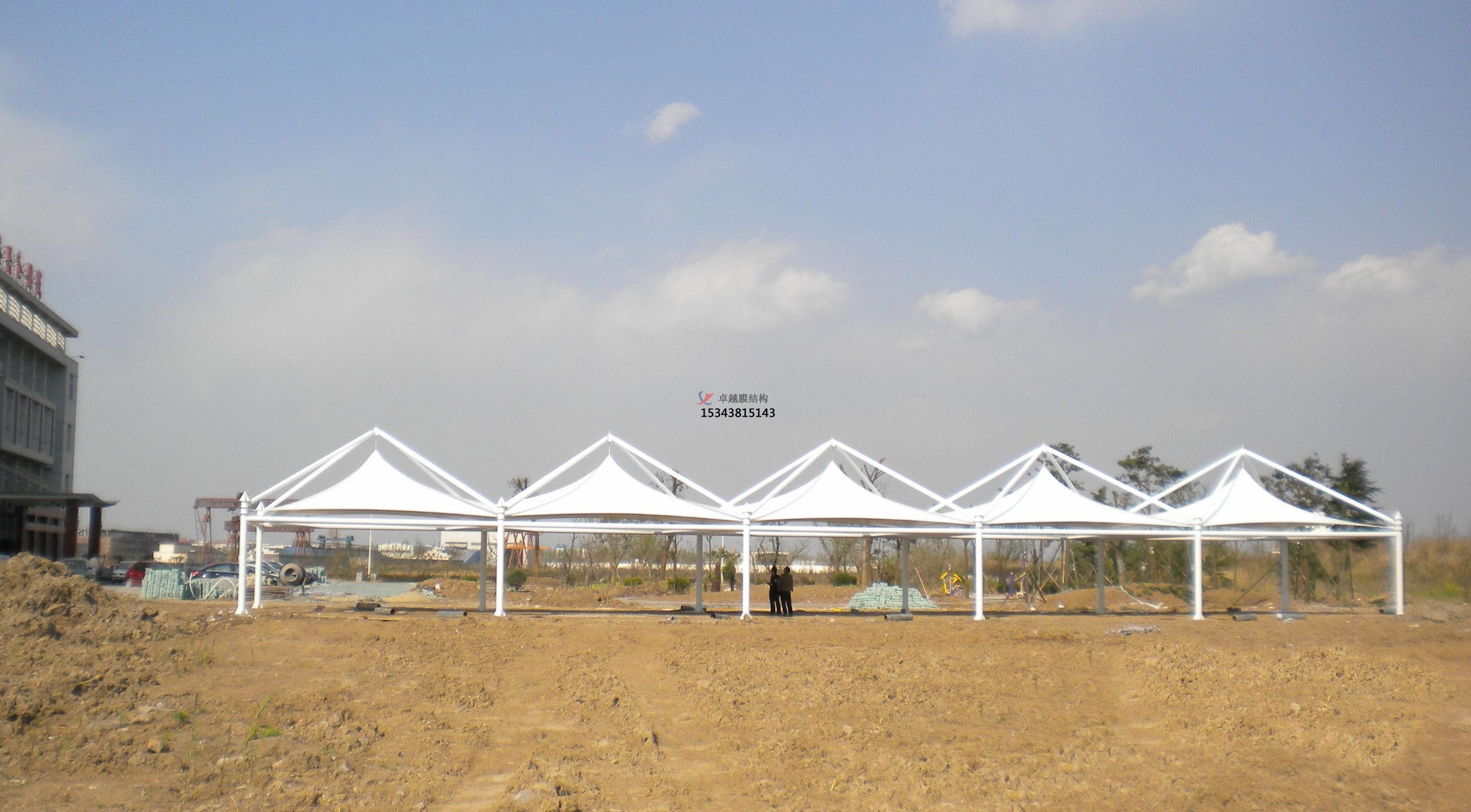 膜結(jié)構(gòu)建筑,在建筑行業(yè)引起了不小的轟動(dòng)。在隨后的幾十年,建筑景觀膜結(jié)構(gòu)遮陽棚得到了迅猛的發(fā)展。景觀膜結(jié)構(gòu)遮陽棚大部分由 鋼材和索構(gòu)成,另外與結(jié)構(gòu)相結(jié)合的膜材也逐漸走向功能化、智能化。膜材具有造型輕巧自由、美觀;透光、節(jié)能、環(huán)保,優(yōu)良的阻燃性能;防污自潔性能;安全、 壽命長等優(yōu)點(diǎn)。基于這些優(yōu)點(diǎn),建筑膜材脫穎而出,景觀膜結(jié)構(gòu)遮陽棚被稱為“21世紀(jì)的建筑”,應(yīng)用于大型體育場館、入口廊道、購物場、娛樂場、停車場、展覽會(huì)場、植物觀光園等建筑。