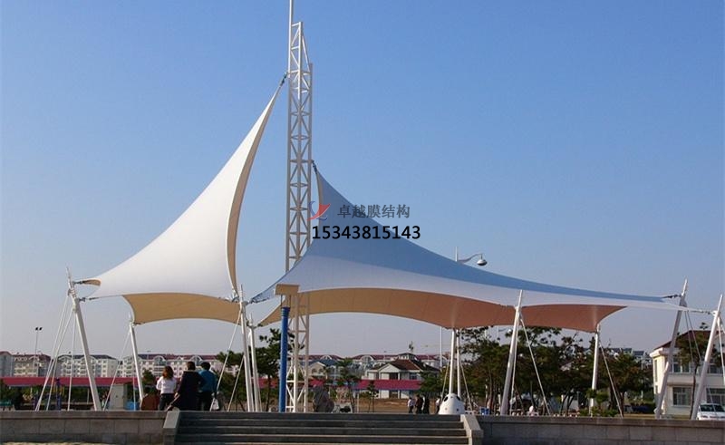 張拉膜景觀加工制作主要加工流程包括:進(jìn)料→檢驗(yàn)?zāi)げ?rarr;圖紙技術(shù)會(huì)審→膜片下料、編號→膜片編排放樣→膜片初拼→高頻駁接→包裝。由于膜材的裁剪、包裝過程都較為復(fù)雜,各種角度變化較多,且加工精度要求非常高,所以在制作過程中要加強(qiáng)質(zhì)量管理,保證制作精度。加工時(shí)的注意事項(xiàng)有: