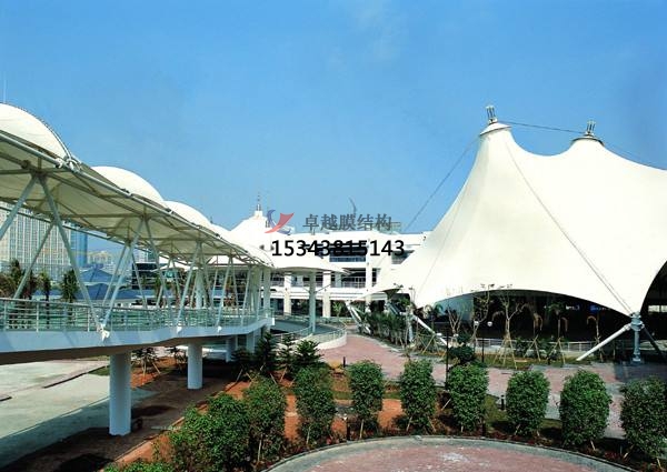膜材自身具有透光性,種一特色使得張拉膜景觀內(nèi)部很亮,這開(kāi)創(chuàng)了修建中的很好的例。這種共同的結(jié)構(gòu)能習(xí)慣各種功用,可廣泛應(yīng)用于街景修建、機(jī)場(chǎng)候機(jī)廳、體育場(chǎng)館、會(huì)議廳、展覽館等修建,等等的種些特性,使得這種材料具有無(wú)限的潛力。