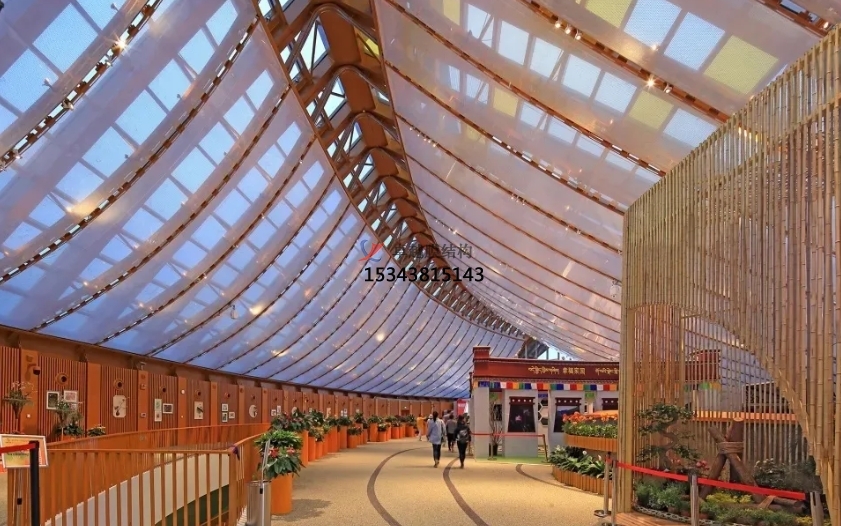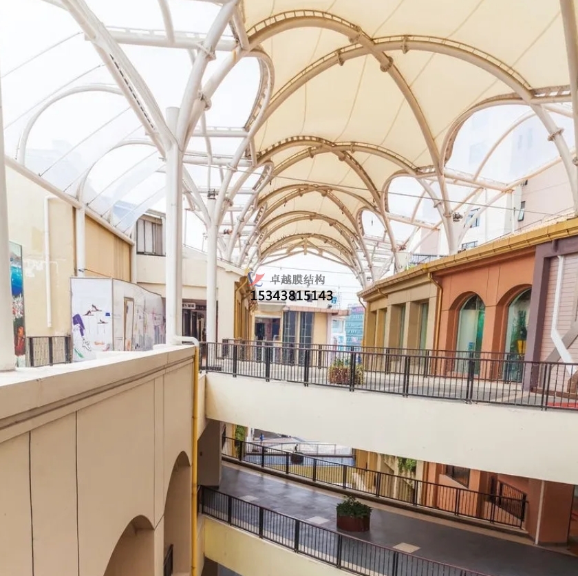 商業(yè)街膜結(jié)頂棚,普通指的是裝置在商業(yè)街頂部的膜結(jié)構(gòu)建筑,為逛街的人們起到遮陽(yáng)擋雨的作用。