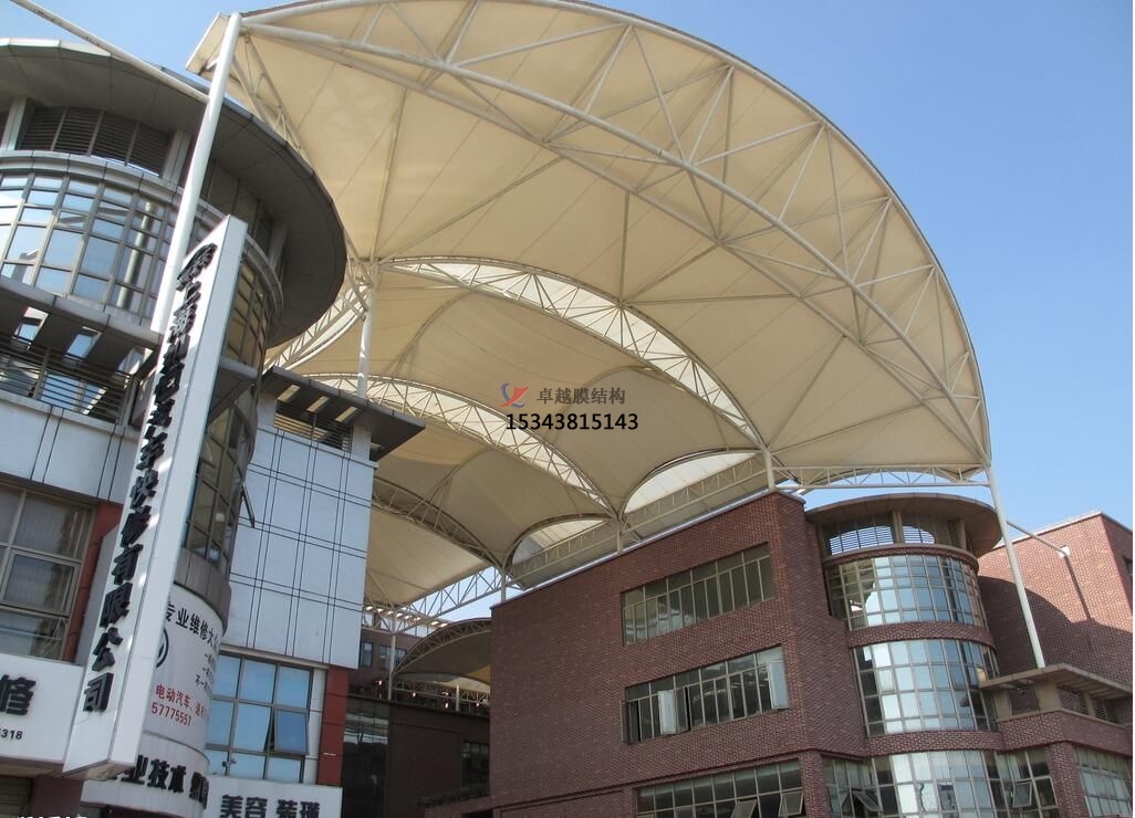 如今在繁華商業(yè)廣場(chǎng)上頻繁出現(xiàn)有新型膜結(jié)構(gòu)遮陽(yáng)雨棚的身影,深受商業(yè)建筑歡迎。
