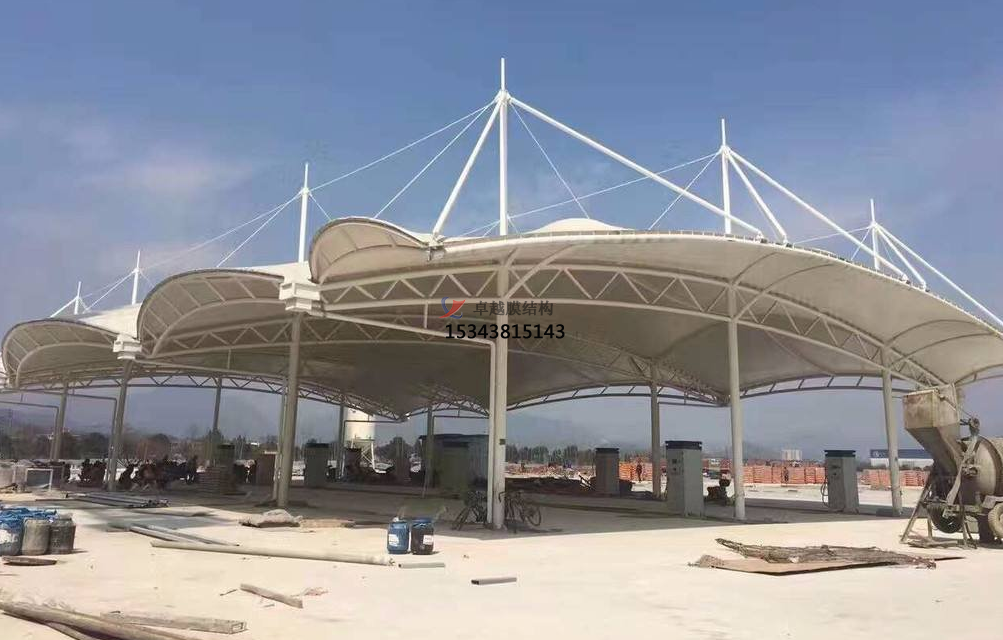 如果說21世紀(jì)的任何建筑是更具代表性的,那無疑是膜結(jié)構(gòu)。它豐富多彩的造型一直受到人們的追捧。其中,更常見的是張拉膜結(jié)構(gòu)的加油站。它本身由膜材料、鋼纜和支柱組成,鋼纜和支柱用于將張力引入膜材料以實(shí)現(xiàn)穩(wěn)定的形式。這種簡單的形式?jīng)]有給設(shè)計(jì)師無限的可能性。
