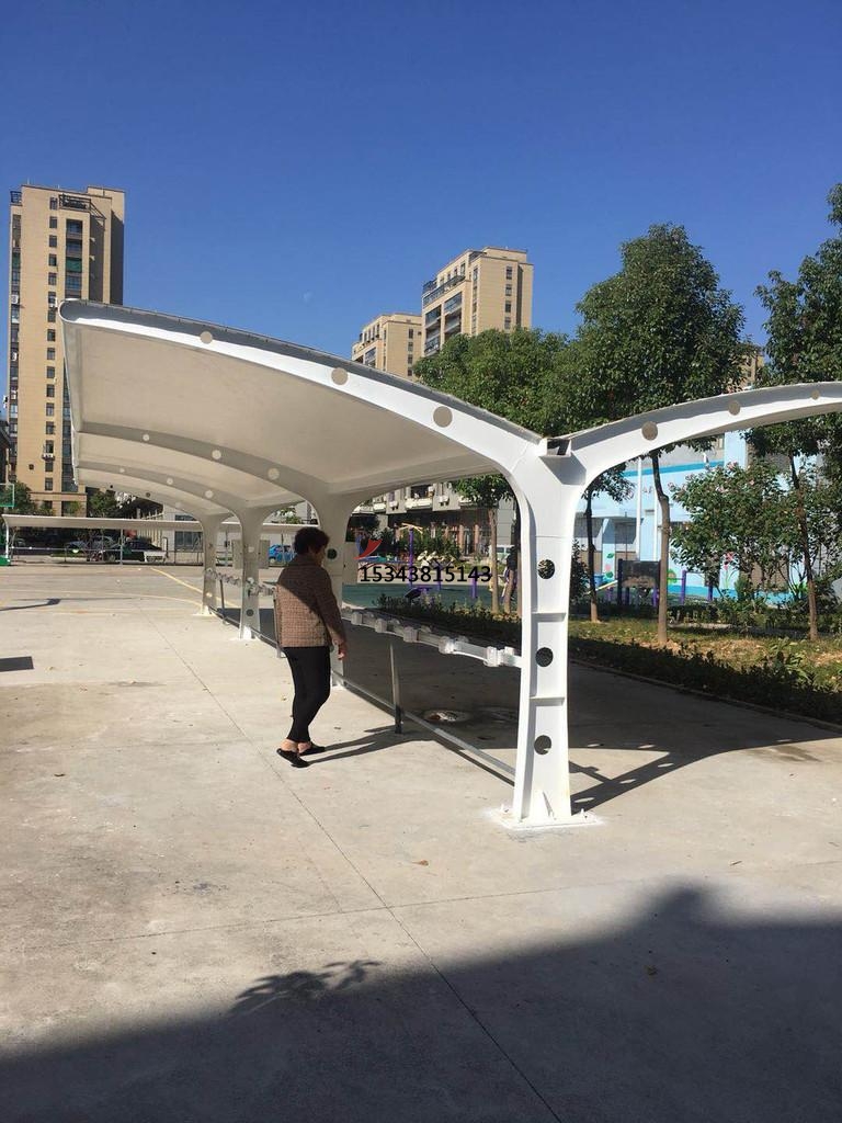 3、膜結(jié)構(gòu)充電站頂部封板采用茶色(顏色可挑選)陽光板封頂,與車棚整體骨架用壓條鉚接固定,耐酸堿腐蝕,有足夠強(qiáng)度對(duì)棚內(nèi)車輛起到保護(hù)作用。