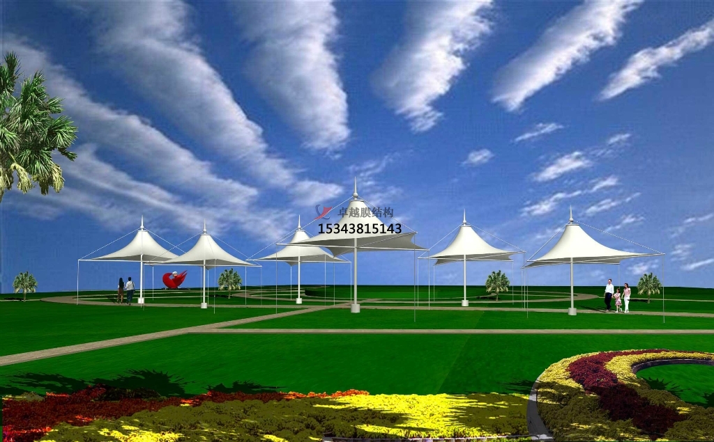 5、每年雨季和冬季來臨前,應(yīng)對園林景觀膜結(jié)構(gòu)的膜面進(jìn)行檢查和清理,保持膜面排水系統(tǒng)暢通;在積雪量較大的地區(qū),應(yīng)采取必要的融雪和排雪應(yīng)急措施。由于膜材料在荷載作用下的變形,在膜表面坡度較小的地方可能會出現(xiàn)積水。對張拉膜結(jié)構(gòu)進(jìn)行監(jiān)測,避免暴雨、大雪、融雪后積水。
