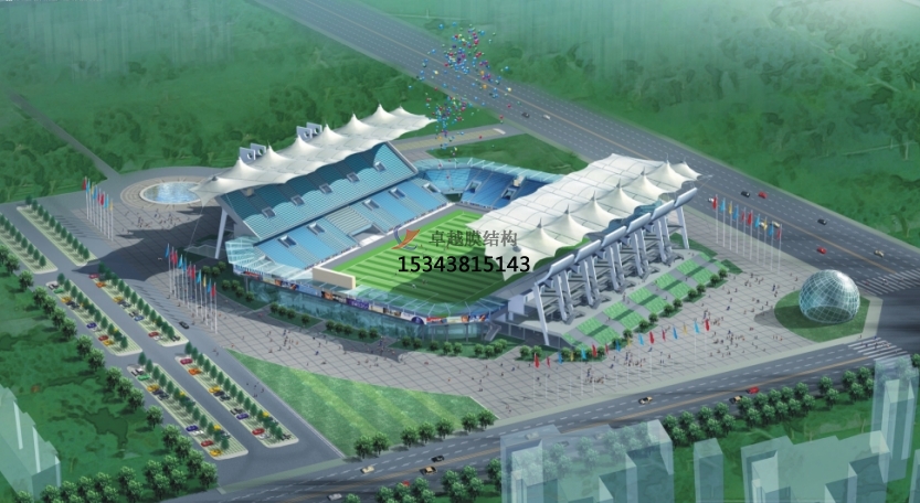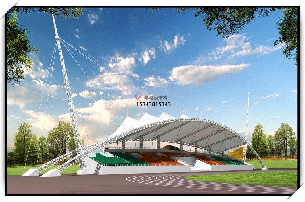 看臺(tái)膜結(jié)構(gòu)是一種建筑與結(jié)構(gòu)結(jié)合的結(jié)構(gòu)體系,采用高強(qiáng)度柔性薄膜材料與輔助結(jié)構(gòu),通過(guò)一定方式使其內(nèi)部產(chǎn)生預(yù)張應(yīng)力,并形成應(yīng)力控制下的某種空間形狀,作為覆蓋結(jié)構(gòu)或建筑物主體,其廣泛應(yīng)用于體育場(chǎng)館、學(xué)校操場(chǎng)等場(chǎng)所的現(xiàn)代建筑形式,主要具備遮陽(yáng)擋雨、優(yōu)化觀賽體驗(yàn)等功能。
