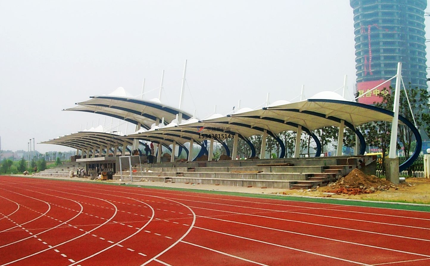 看臺(tái)膜結(jié)構(gòu)的應(yīng)用場(chǎng)景較為廣泛,常見(jiàn)于體育場(chǎng)館、學(xué)校看臺(tái)和景觀融合中。體育場(chǎng)館如德國(guó)慕尼黑安聯(lián)競(jìng)技場(chǎng)(Allianz Arena)以ETFE膜營(yíng)造動(dòng)態(tài)光影效果,卡塔爾體育場(chǎng)結(jié)合鋼索桅桿實(shí)現(xiàn)無(wú)柱大空間;學(xué)??磁_(tái)如內(nèi)蒙古科爾沁左翼后旗實(shí)驗(yàn)學(xué)校、咸陽(yáng)中學(xué)等項(xiàng)目采用膜結(jié)構(gòu)遮陽(yáng)棚,兼顧耐久性與審美需求;景觀融合如泰安汶河景區(qū)船帆膜結(jié)構(gòu)、鄂爾多斯西山公園張拉膜,將功能性與自然景觀有機(jī)統(tǒng)一。膜結(jié)構(gòu)看臺(tái)通過(guò)材料創(chuàng)新與精密工程,實(shí)現(xiàn)了功能、美學(xué)與經(jīng)濟(jì)的平衡,正逐步成為現(xiàn)代體育及公共設(shè)施的主流選擇。