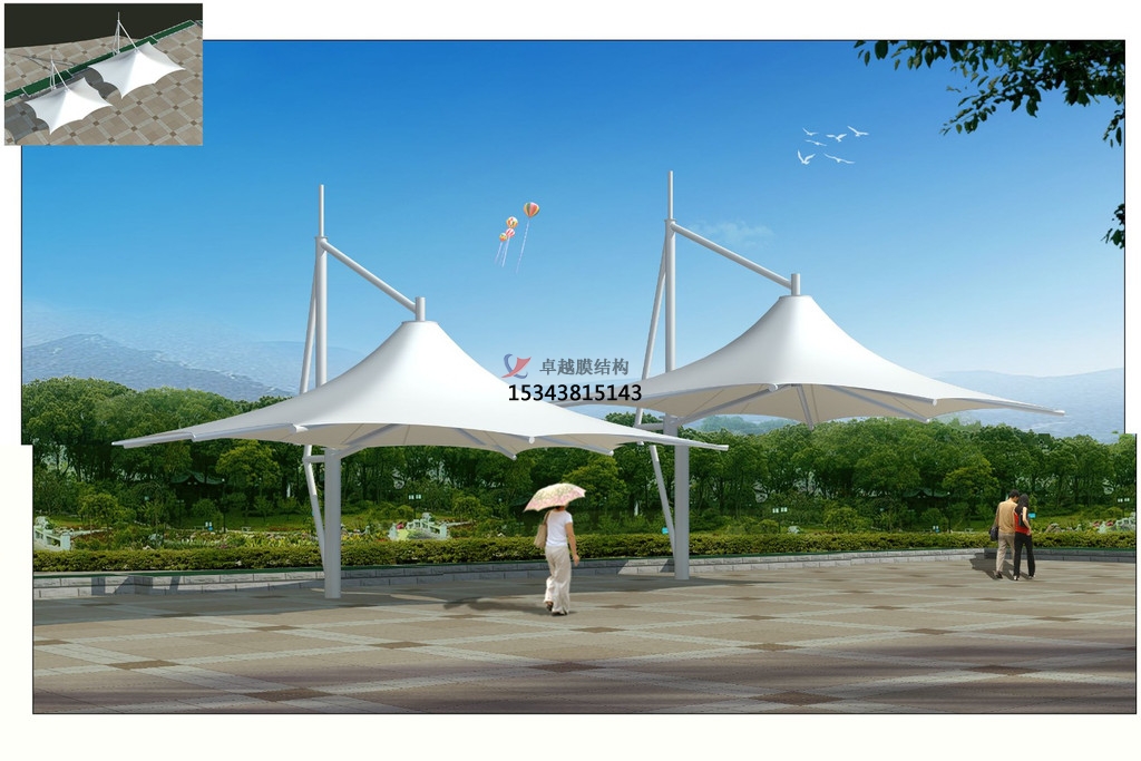 用于張拉膜景觀有二種很好的要修建織物,即涂敷聚四氟乙烯(PTFE)的玻璃纖維織物和涂敷聚乙烯(PVC)的聚酯織物。PTFE玻璃纖維織物具有強度高、半透明、耐火不燃以及自潔性好等長處。雖然資料的確保年限是25年,但依照實際運用的經(jīng)歷,其希望的運用壽命將會更長。玻璃纖維膜材的僅有缺陷是價格較貴。PVC聚酯織物與玻璃纖維織物比較,其強度等功能稍差,運用年限也較短,但價格卻很廉價,大約在1/5左右。加了改善其功能可在涂層外再加一層面層,聚偏氟乙烯(PVF)或聚偏二氟乙烯(PVDF)。這種面層能維護(hù)織物反抗紫外線的侵蝕,并改善其自潔性。