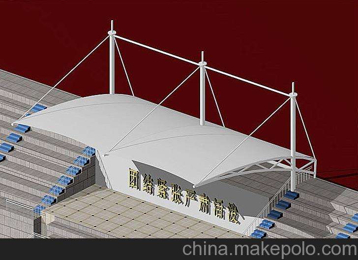 張拉膜看臺(tái)主要用于各類地方體育場(chǎng)主席臺(tái)雨棚,各類學(xué)校體育場(chǎng)看臺(tái)雨棚遮蓋,我公司是國(guó)內(nèi)較早從事大懸挑張拉膜結(jié)構(gòu)看臺(tái)設(shè)計(jì)施工的專業(yè)廠家,下面介紹一下我們?cè)谂R汾市周邊縣市完工的一些張拉膜看臺(tái)設(shè)計(jì)施工案例,我公司先后在臨汾市周邊承接了臨汾市第中心學(xué)校張拉膜看臺(tái)雨棚、臨汾市五一路學(xué)校張拉膜看臺(tái)罩棚、臨汾市第三中學(xué)張拉膜看臺(tái)遮陽(yáng)棚張拉膜看臺(tái)遮陽(yáng)棚張拉膜看臺(tái)遮陽(yáng)棚等設(shè)計(jì)施工項(xiàng)目,簡(jiǎn)介如下:
