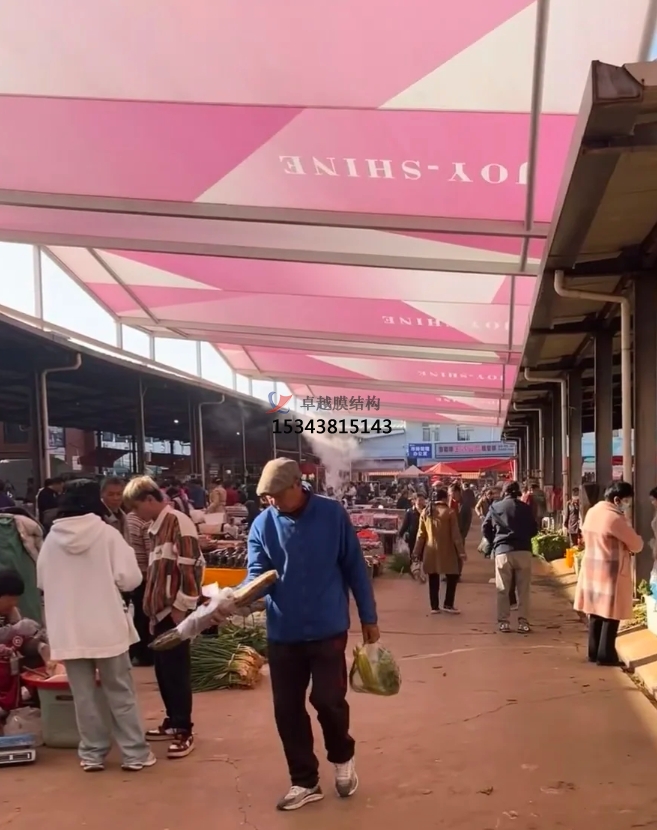 城市中心傳統(tǒng)農(nóng)貿(mào)市場(chǎng)改造:在城市核心區(qū)域,土地資源緊張,傳統(tǒng)農(nóng)貿(mào)市場(chǎng)設(shè)施陳舊、空間局促。膜結(jié)構(gòu)改造方案通過拆除原有老舊頂棚,搭建輕巧、美觀的膜結(jié)構(gòu)頂棚,能在不增加過多占地面積的情況下,優(yōu)化市場(chǎng)空間,提升采光、通風(fēng)效果,改善購(gòu)物環(huán)境,同時(shí)保留傳統(tǒng)市場(chǎng)的煙火氣,讓城市記憶與現(xiàn)代功能完美融合,如北京的部分老城區(qū)農(nóng)貿(mào)市場(chǎng)改造項(xiàng)目,就借助膜結(jié)構(gòu)實(shí)現(xiàn)了華麗轉(zhuǎn)身,重新煥發(fā)生機(jī)。