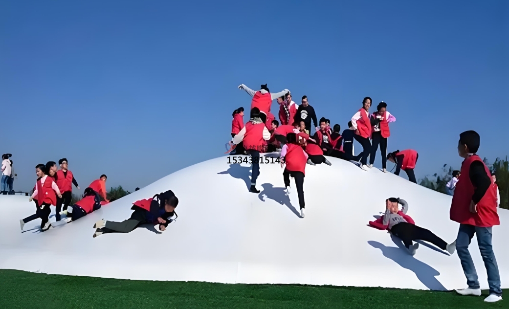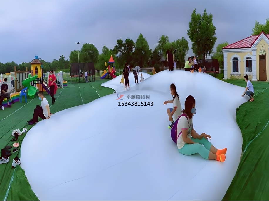 蹦蹦云的設計高度靈活,可根據場地環(huán)境定制形態(tài)與規(guī)模。無論是平坦空地還是起伏地形,均可通過設置沙坑、坡度或洞穴,塑造自然野趣的游樂場景。其純白外觀與云朵造型,既能融入景區(qū)生態(tài)景觀,也可作為商業(yè)地產的網紅打卡點。從親子樂園到度假村,從生態(tài)農莊到特色小鎮(zhèn),蹦蹦云以 “可蹦、可滑、可躺” 的多維體驗,滿足全年齡段游客的互動需求。