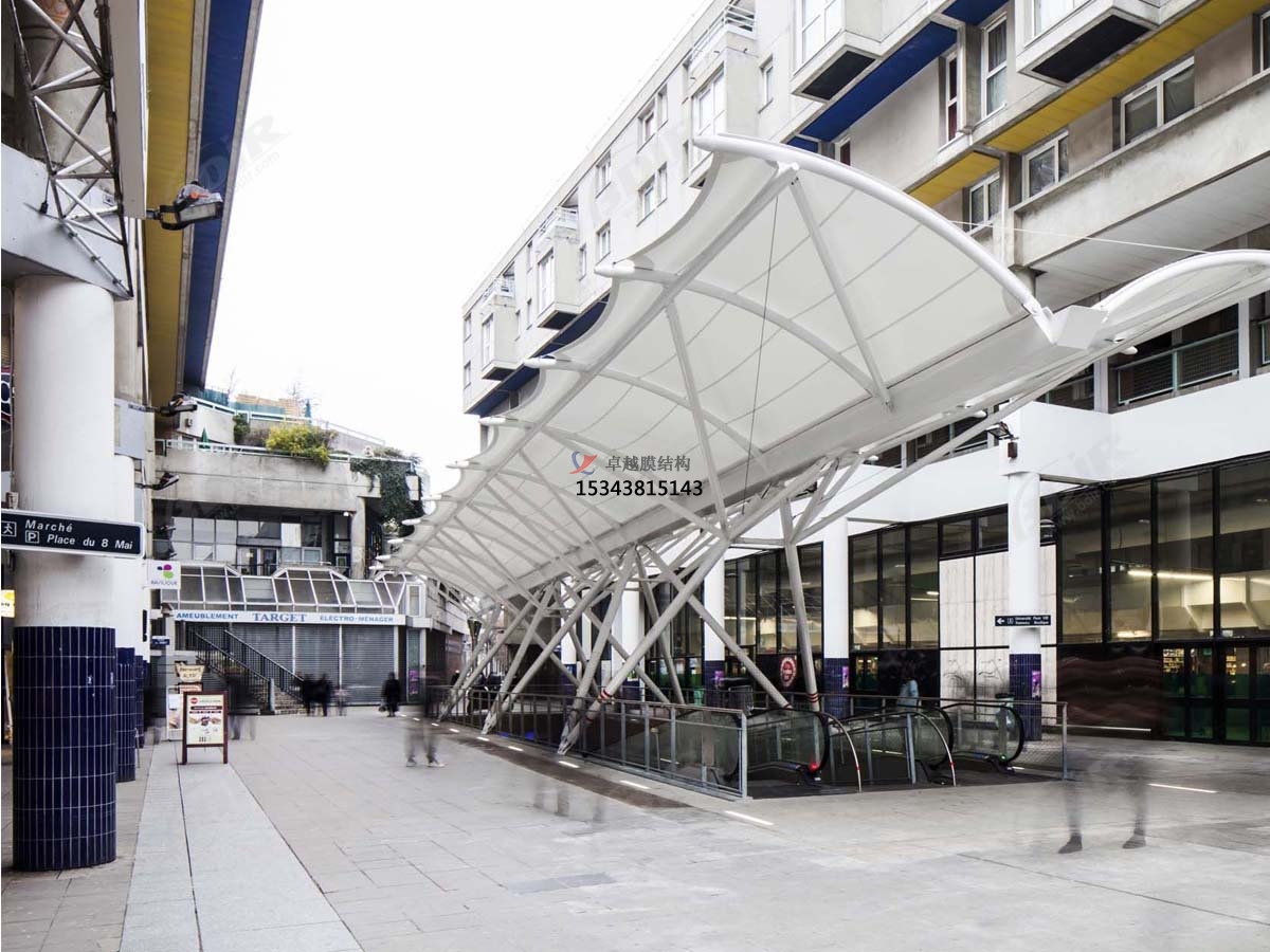 在功能方面,該入口為商場提供了一個寬敞、明亮的入口大廳,使得顧客可以更加舒適地進入商場購物。同時,入口的設(shè)計也充分考慮到了顧客的安全因素,采用了高強度的薄膜材料和支撐結(jié)構(gòu),確保入口的安全性和可靠性。