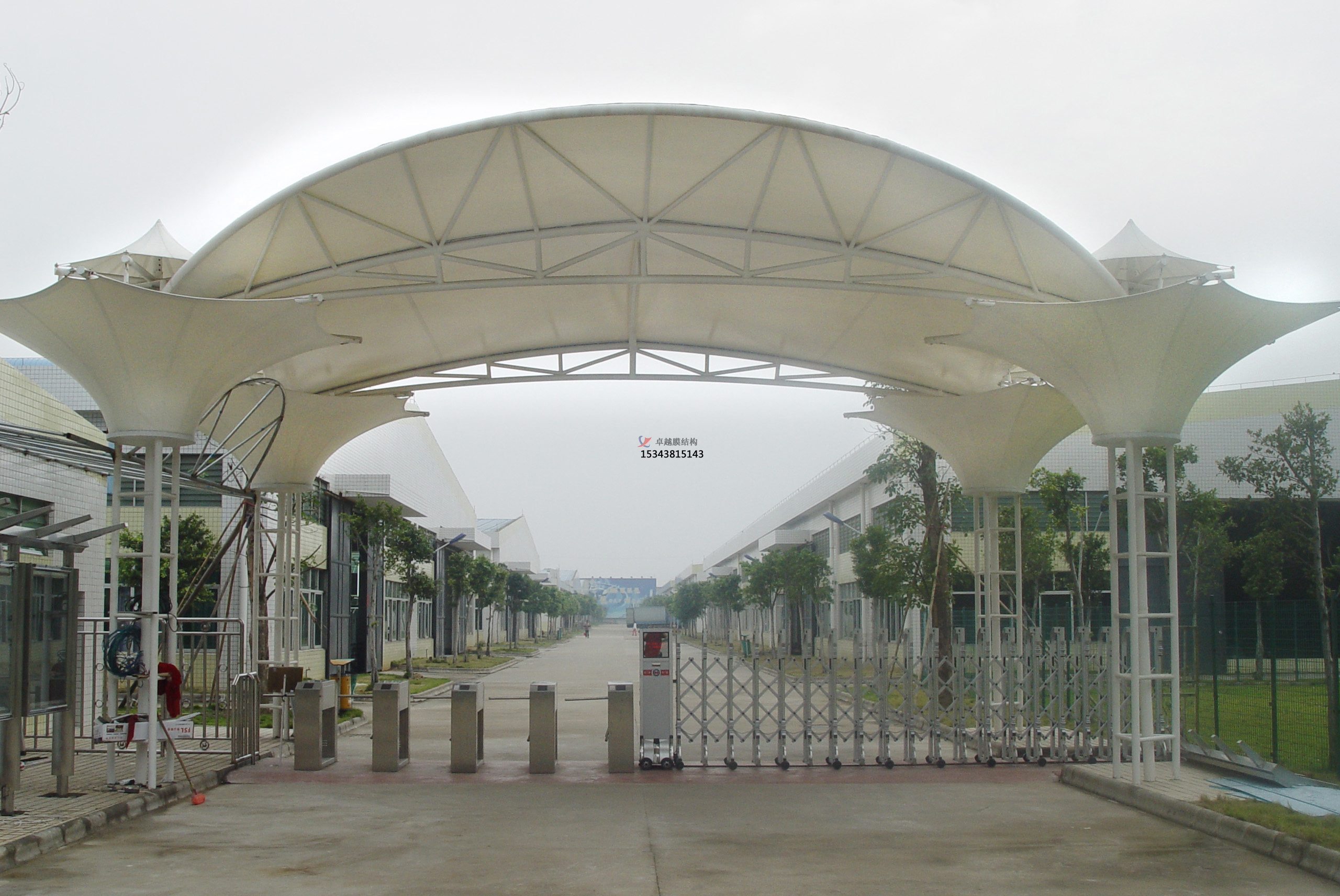 大門(mén)膜結(jié)構(gòu)的出入口主要為大門(mén)提供遮陽(yáng)和防雨功能,增加大門(mén)造型的觀賞性和藝術(shù)性。其優(yōu)點(diǎn)如下: