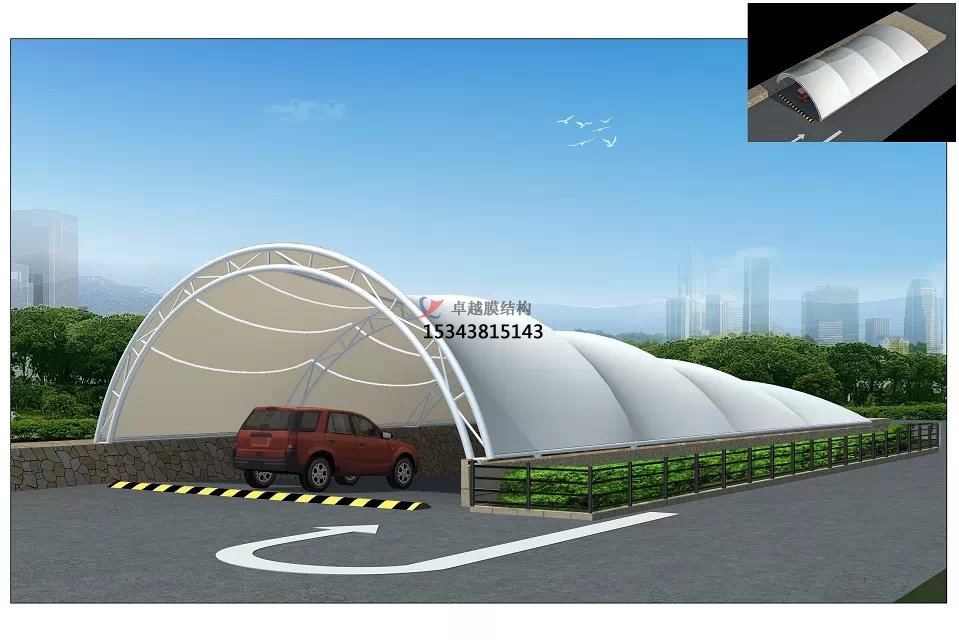 地下車庫(kù)膜結(jié)構(gòu)主要是取代地下車庫(kù)出入口的一些傳統(tǒng)雨棚,有很多優(yōu)點(diǎn):