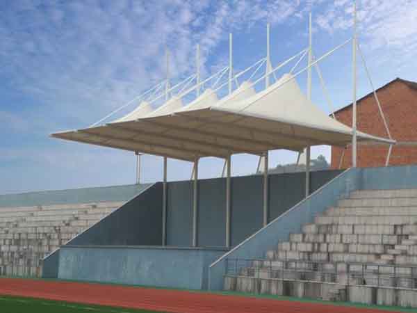 張拉膜看臺(tái)主要用于各類地方體育場主席臺(tái)雨棚,各類學(xué)校體育場看臺(tái)雨棚遮蓋,我公司是國內(nèi)較早從事大懸挑張拉膜結(jié)構(gòu)看臺(tái)設(shè)計(jì)施工的專業(yè)廠家,下面介紹一下我們?cè)诮B興市周邊縣市完工的一些張拉膜看臺(tái)設(shè)計(jì)施工案例,我公司先后在紹興周邊承接了紹興文理學(xué)院張拉膜看臺(tái)雨棚、紹興職業(yè)技術(shù)學(xué)院張拉膜看臺(tái)罩棚、浙江農(nóng)業(yè)商貿(mào)職業(yè)學(xué)院張拉膜看臺(tái)遮陽棚等設(shè)計(jì)施工項(xiàng)目,簡介如下: