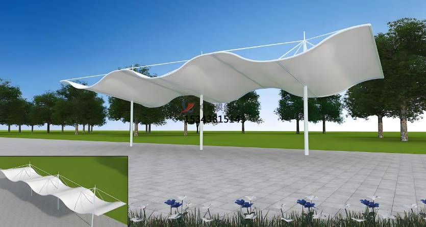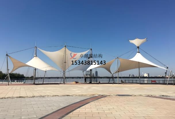 膜面的張拉與安裝:根據(jù)設計要求,在膜結(jié)構(gòu)上安裝各種配件,如索具、連接件、錨固件等。這些配件的安裝位置和方式直接影響到膜結(jié)構(gòu)的整體性能和穩(wěn)定性,因此需要嚴格按照設計要求進行安裝,并確保安裝牢固可靠。膜面安裝時需通過張拉設備施加預應力,確保膜結(jié)構(gòu)在荷載作用下的穩(wěn)定性。張拉過程中需注意膜面的均勻受力,避免局部應力集中。安裝完成后需進行整體檢查,確保膜結(jié)構(gòu)的外觀和功能符合設計要求。