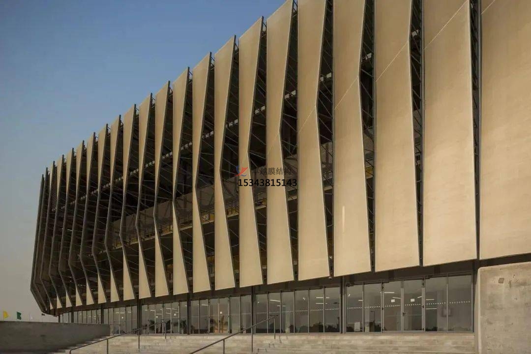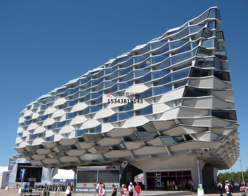 膜結(jié)構(gòu)幕墻是膜結(jié)構(gòu)在建筑外圍護(hù)結(jié)構(gòu)的應(yīng)用,以耐候性的柔性織物作為圍護(hù)材料,結(jié)合框架系統(tǒng),對(duì)既有建筑的外立面進(jìn)行翻新改造或新建筑外立面設(shè)計(jì)應(yīng)用的一種建筑外立面解決方案。膜結(jié)構(gòu)充滿張力且富于變化的曲面,自在靈敏的大空間、透明半透明膜材所構(gòu)成的明亮而又溫和的室內(nèi)環(huán)境,桅桿、拉索、精致的金屬節(jié)點(diǎn)等所表現(xiàn)的富有現(xiàn)代氣息的結(jié)構(gòu)技術(shù),給人們提供了有別于傳統(tǒng)幕墻結(jié)構(gòu)的全新視覺(jué)感受,它具有環(huán)保節(jié)能、可100%回收再利用、施工方便、重量輕、高強(qiáng)、高彈、高透光性、柔軟流暢、造型美觀、結(jié)構(gòu)固定簡(jiǎn)單等特點(diǎn)。