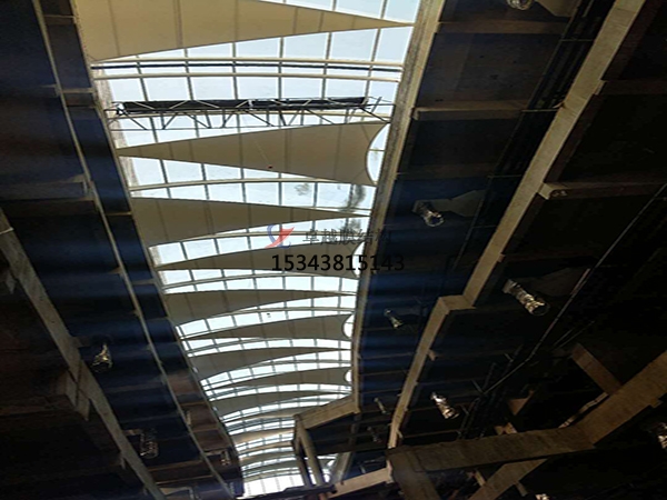 1)張拉式膜結構。這也是現在比較常見的一種,主要以膜材、鋼索及支柱構成,是更能夠展現出膜結構創(chuàng)新美觀造型的形式。