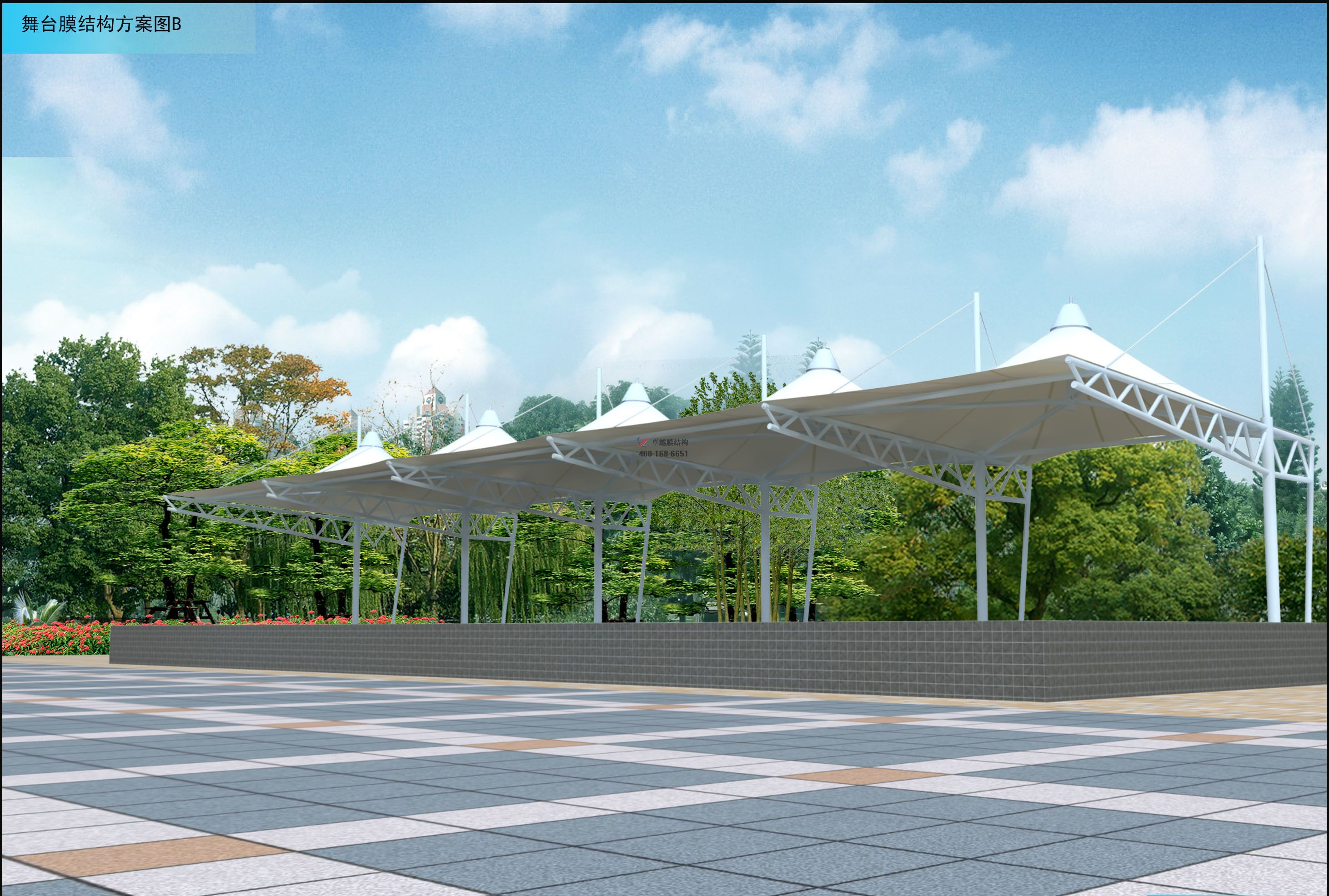膜結構舞臺主要應用于各類體育場、廣場、公園等,我司是具有獨立法人資格,獨立設計施工、獨立生產加工