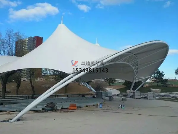 5.抵御天氣的影響:舞臺膜屋面的一個重要作用就是抵御各種天氣變化(如日曬、雨淋、風雪等)對其內部空間的影響,保持建筑物內部的舒適性。選擇膜面的形態(tài)和材料時要考慮到所有可能的天氣狀況,并盡可能利用建筑本身等被動方法來減少能量的消耗。