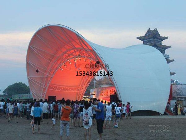 膜結(jié)構(gòu)舞臺(tái)是膜結(jié)構(gòu)材料近年來應(yīng)用的一個(gè)新領(lǐng)域,膜結(jié)構(gòu)建筑能很好的籠罩全部的舞臺(tái),膜結(jié)構(gòu)的張拉樣式使得建筑的空間跨度變的更大,同時(shí)能縮小建筑的結(jié)構(gòu),建筑的整體重量減輕,這樣施工就會(huì)變的簡單安全。這些都是膜結(jié)構(gòu)被廣大用戶選擇的關(guān)鍵因素。膜材的表面都有一種涂層,涂層是為了預(yù)防灰塵雨水的影響,起到保護(hù)膜結(jié)構(gòu)使用年限的作用。