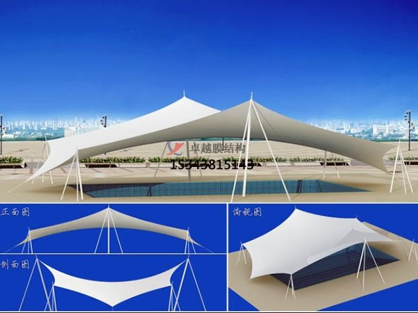 一個城市的中心區(qū)反映一個城市的地理風貌和民族風情,同時,也是一個城市文化發(fā)展程度的標志。而景觀設計要求其具有廣泛的可讀性、雅俗共賞,既有超凡脫俗的藝術(shù)價值,又能使大眾喜聞樂見與大眾息息相通。膜結(jié)構(gòu)以其輕盈飄逸的造型、柔美并帶有力量的曲線和大跨度和大空間的鮮明個性和標識性,應用于城市小品設計中。
