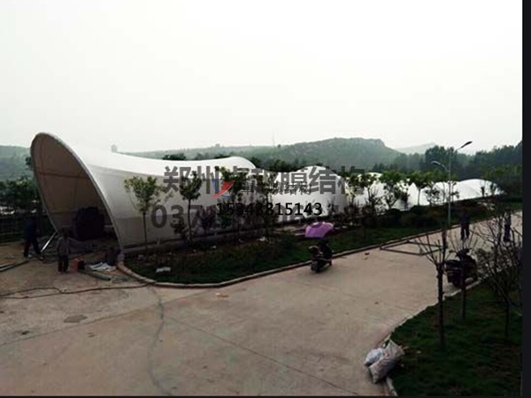 膜結(jié)構(gòu)是一種由高強(qiáng)膜資料和強(qiáng)構(gòu)件(鋼結(jié)構(gòu)或拉索)通過必定方法使其內(nèi)部產(chǎn)生必定的張應(yīng)力以構(gòu)成某種空間形狀,可作為掩蓋結(jié)構(gòu)并能承受必定的外荷載的空間結(jié)構(gòu)方式。膜結(jié)構(gòu)以杰出的自潔性、隔熱性以及高強(qiáng)耐久、造型新穎、自重輕等優(yōu)點(diǎn)廣泛應(yīng)用于休閑小區(qū)、輕型大跨度無(wú)柱空間或輕型屋蓋修建結(jié)構(gòu)。由于膜結(jié)構(gòu)是張力結(jié)構(gòu)的一種,只有在必定的張力作用下,膜結(jié)構(gòu)才有必定的形狀和剛度,因此膜結(jié)構(gòu)修建表現(xiàn)了力的平衡美,是一種受力更為合理的結(jié)構(gòu)方式。選用輕質(zhì)膜材,一起輔以柔性拉索、輕型剛架的結(jié)構(gòu)方式,可以很好地到達(dá)大跨度、掩蓋大空間的目的。