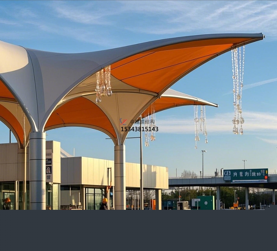 引導交通:奪目的膜結構造型可作為天然的交通引導標識。一同的形狀和色彩,能在遠距離招引駕駛員的注意力,引導車輛有序駛入收費車道,進步收費站的通行功率,減少交通擁堵。例如,一些規(guī)劃成一同曲線或帶有顯著色彩標識的膜結構,讓駕駛員在繁忙的交通流中能迅速找準方向。