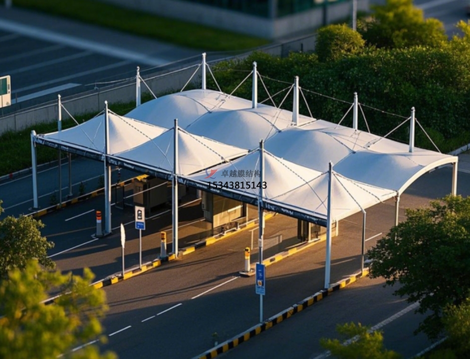 在現(xiàn)代交通網(wǎng)絡中,收費站作為要害節(jié)點,其修建規(guī)劃正履歷著從傳統(tǒng)向立異的改變。其間,膜結構以其一同優(yōu)勢,在收費站建設中鋒芒畢露,成為一道兼具有用與美觀的風景線。