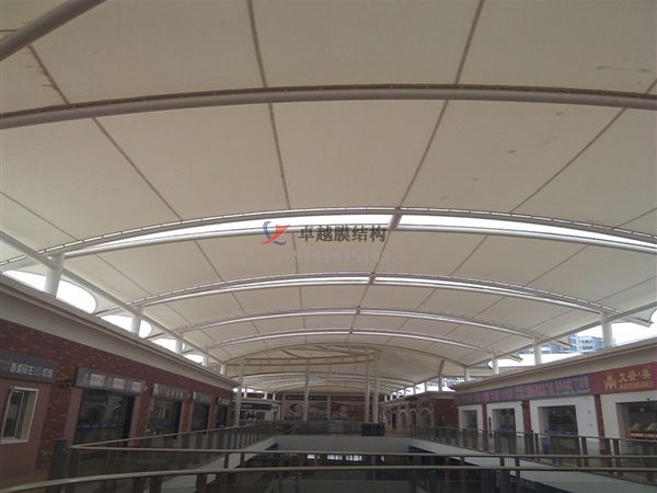 昌吉商場(chǎng)膜結(jié)構(gòu)、商業(yè)街頂蓋膜結(jié)構(gòu)、步行街走廊頂棚、罩棚、遮陽棚、雨棚工程案例